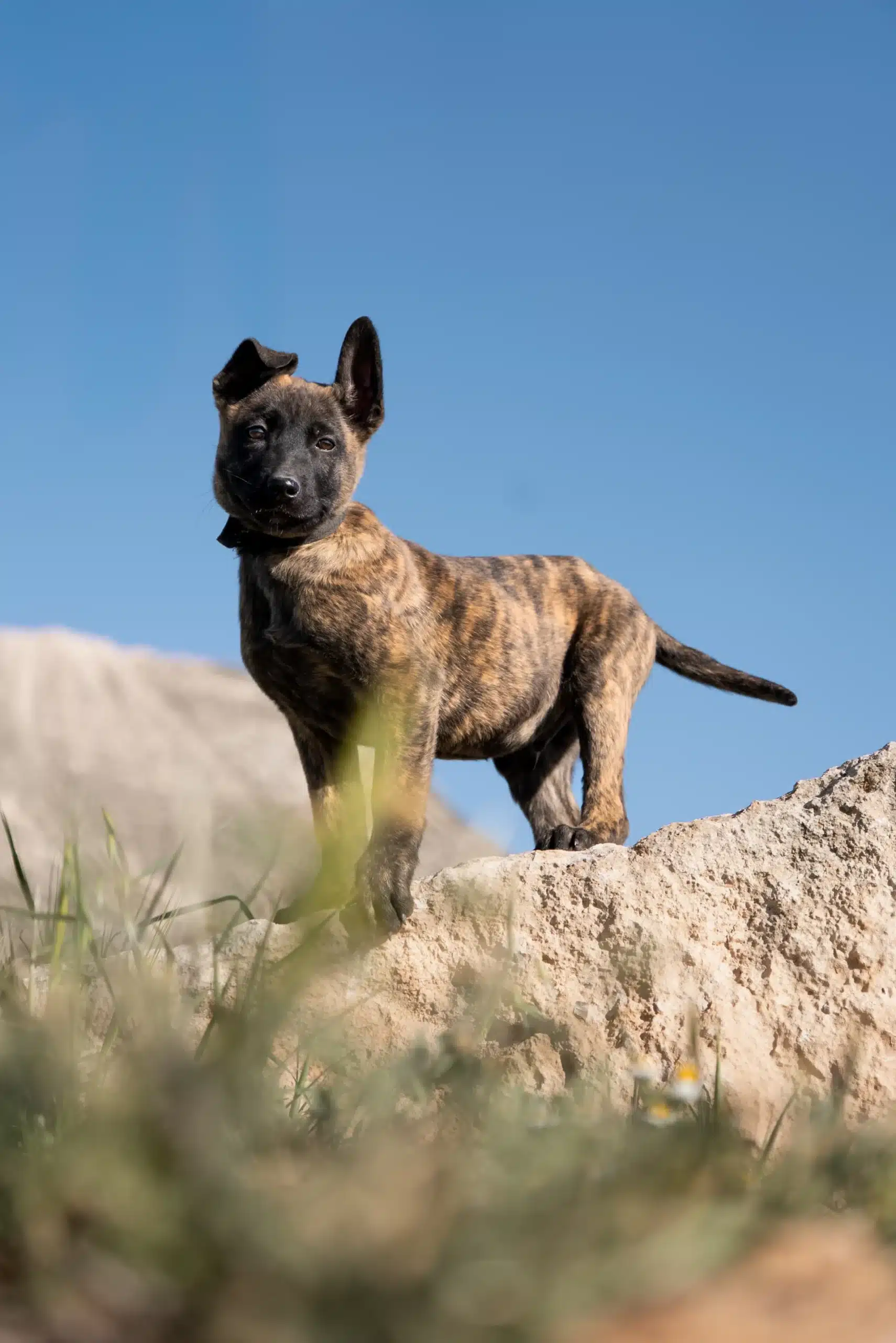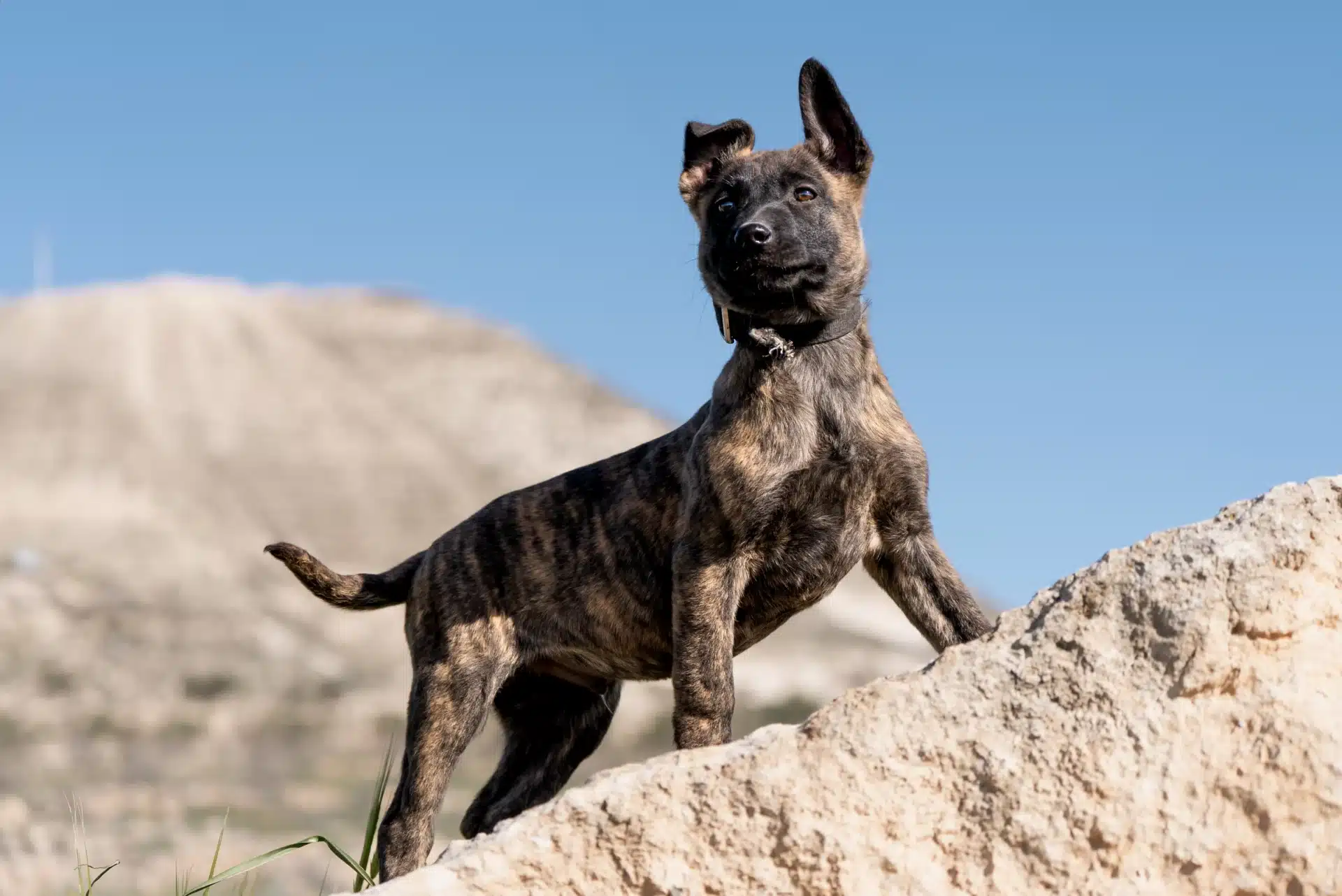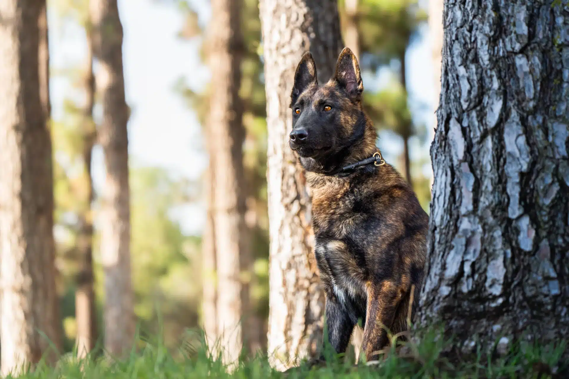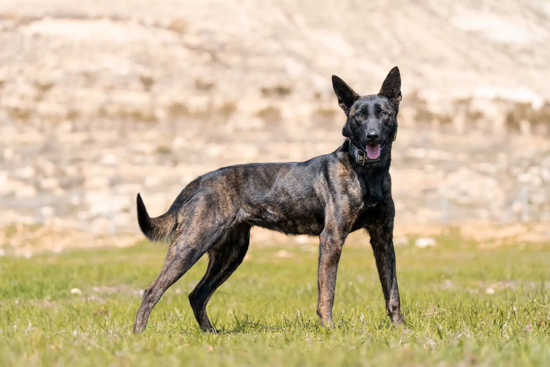 The traditional color of the Dutch Shepherd is brindle, ranging from golden tones to silver or gray variations. Brindle patterns originally served to distinguish Dutch Shepherds from German Shepherds. In working bloodlines, darker brindles often convey a strong, serious appearance. Rare colors such as pure black typically indicate influence from other breeds rather than classic Dutch Shepherd lineage. While color does not affect temperament or character, it provides insight into the bloodlines behind the dog.