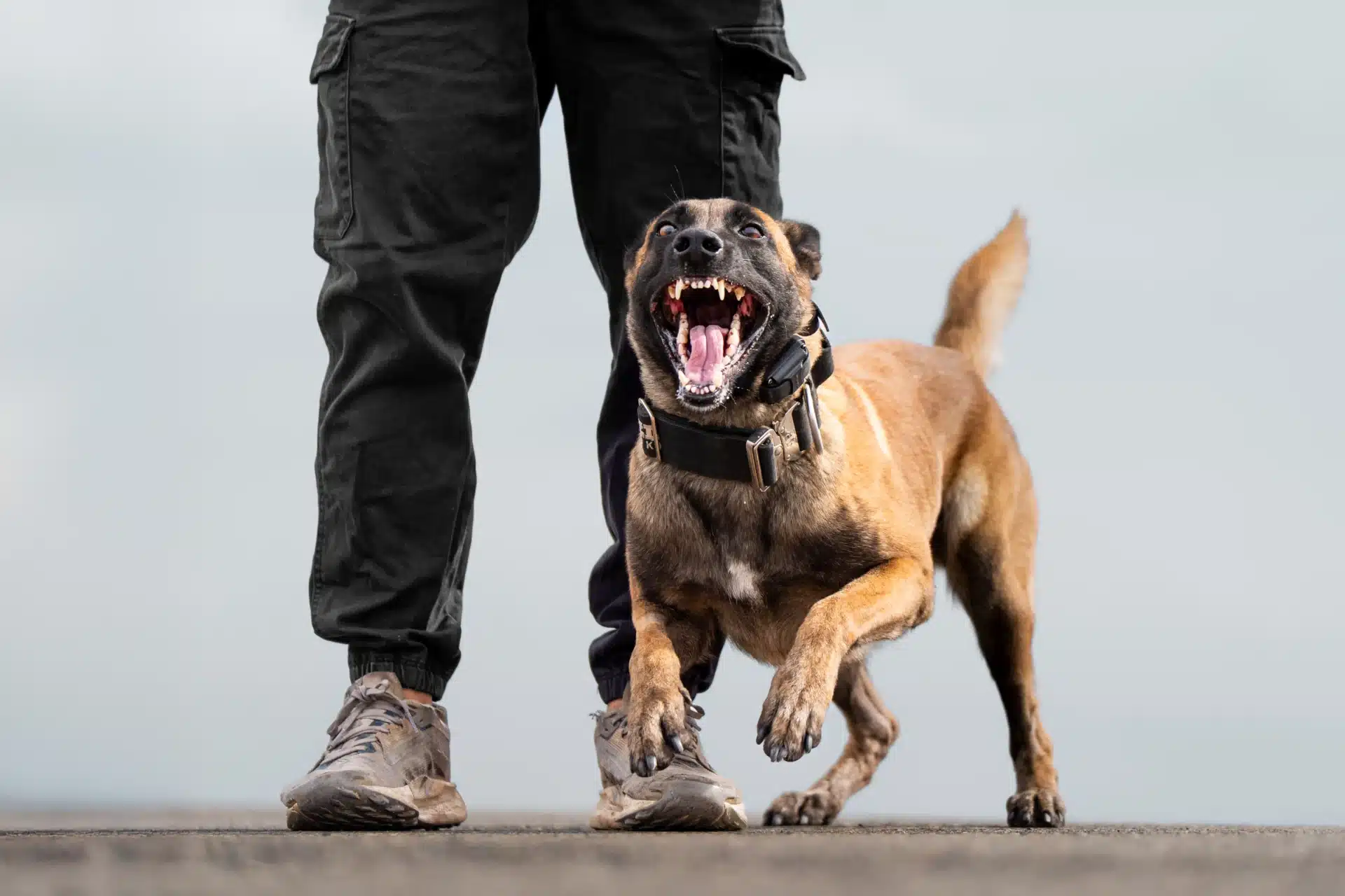 Controlled aggression training instructs the dog to bite on command and maintain pressure until released. The dog is taught precise target areas, correct bite technique, and strategies to minimize risk of injury during confrontations. Equally critical, the dog learns to release immediately upon command, preventing excessive force and allowing handlers to safely de-escalate encounters once threats are neutralized.